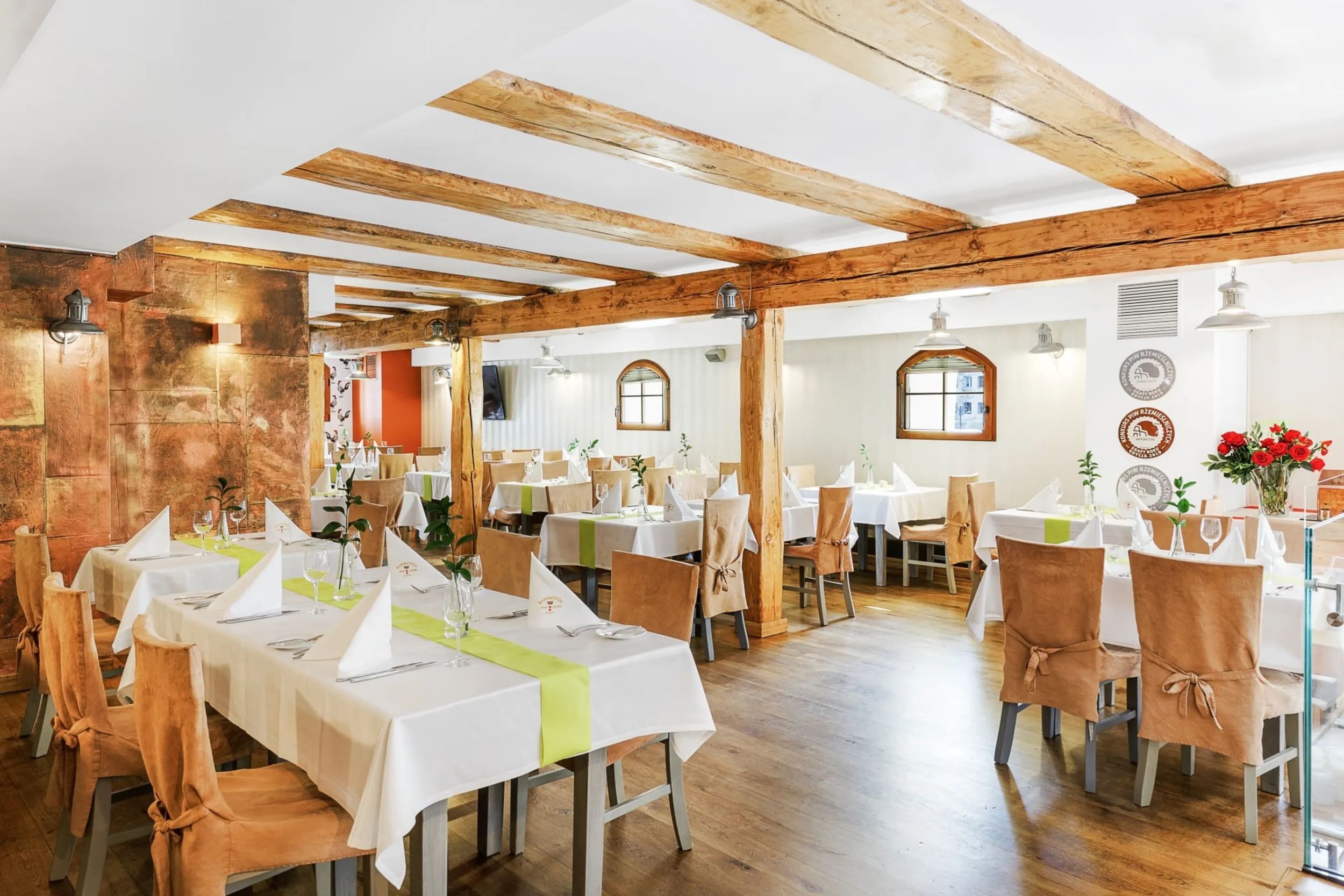 Hver morgen står buffetbordet bugnende med alt fra frisk frugt, æg og hjemmebag til lokale oste og pålæg. Hotellets egen restaurant og tilhørende bryggeri i kælderen byder både på sæsonbetonede retter og lystige ølsmagninger – “the best beer in Gdansk,” lyder det fra glade gæster.
