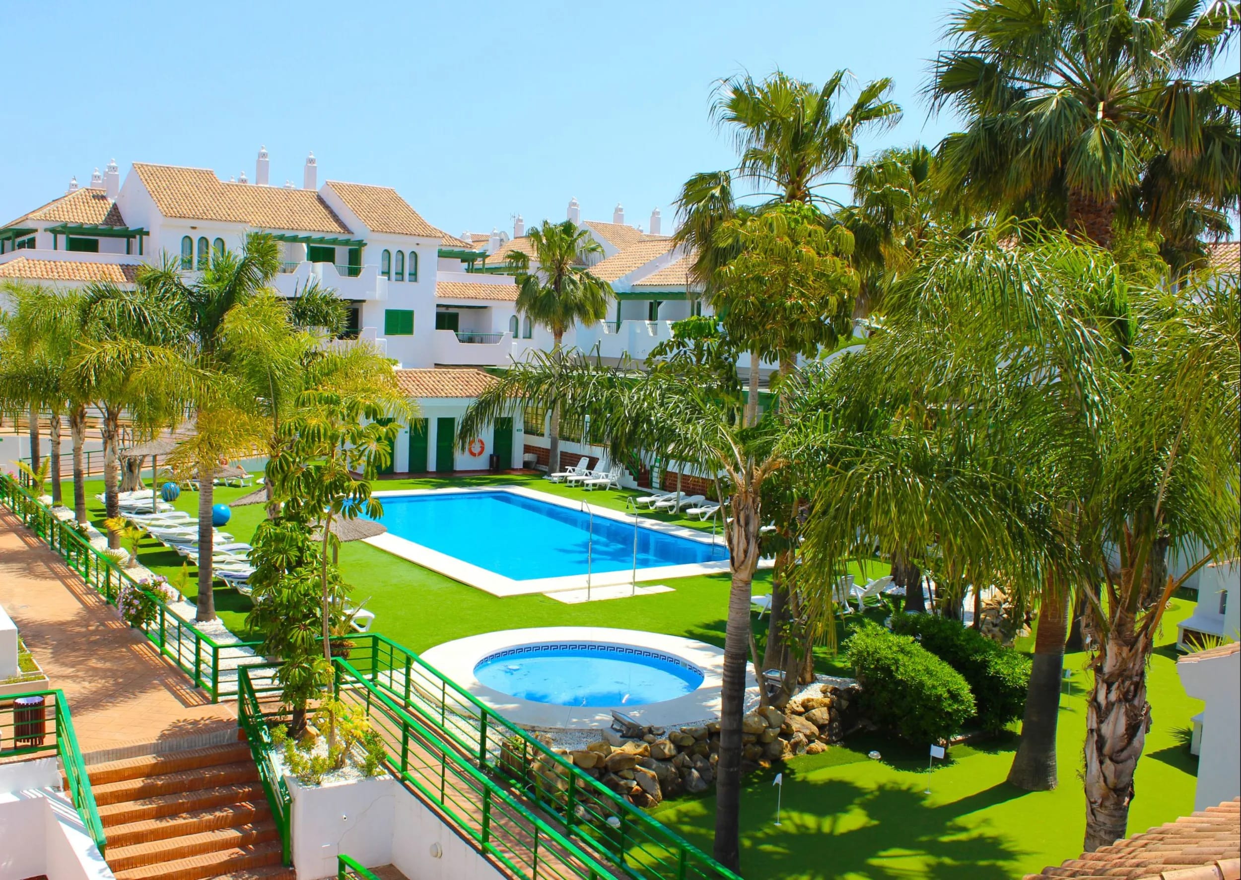På Manilva Sun oplever du en unik ferieoplevelse i et charmerende kompleks, designet som en andalusisk landsby med hyggelige gårdhaver og frodige haver. Stedet er kendt for deres familiære atmosfære og venlige service, hvilket gør det til et ikon i området.